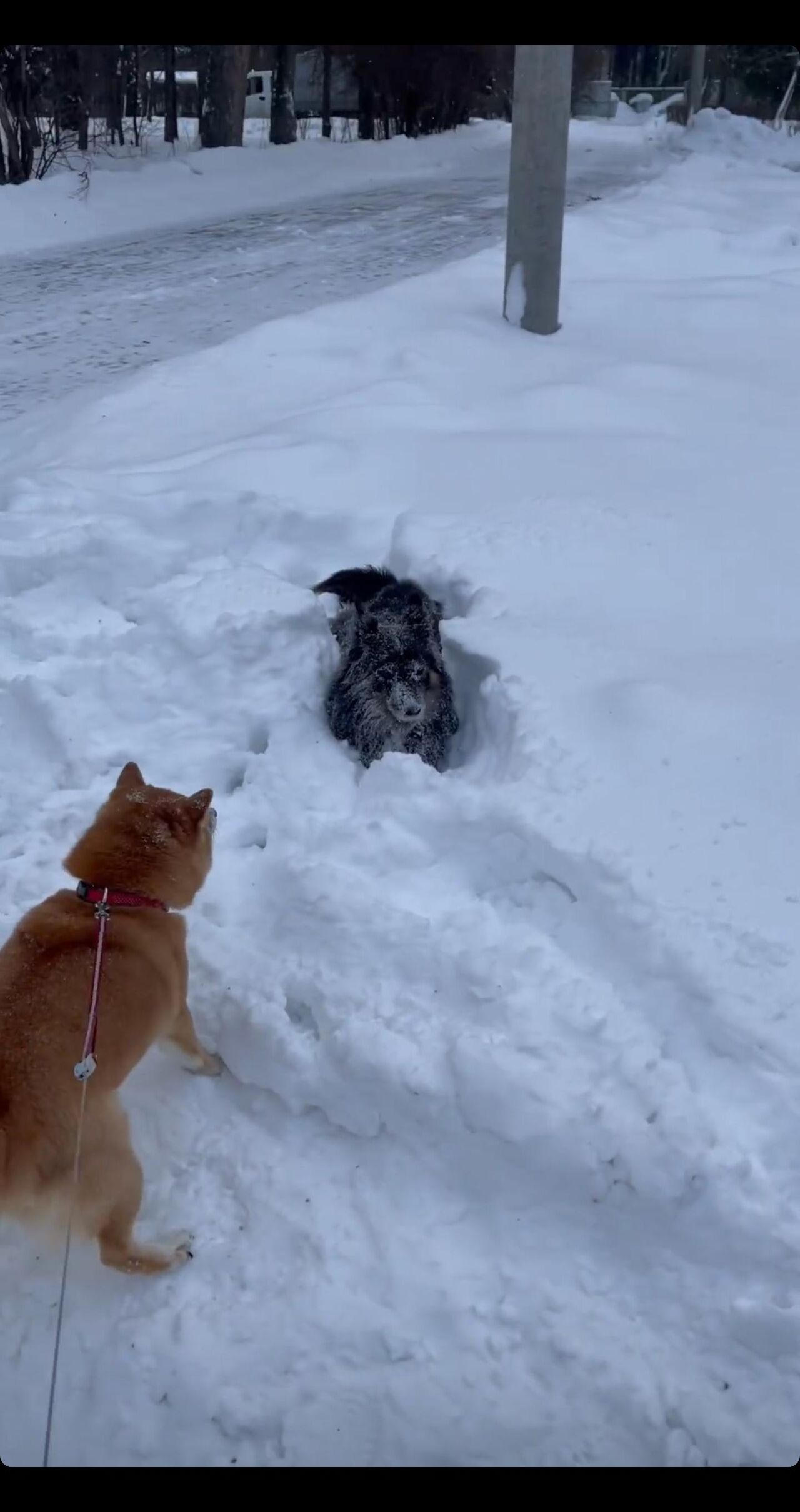 雪道散歩してる犬ってみんな機嫌