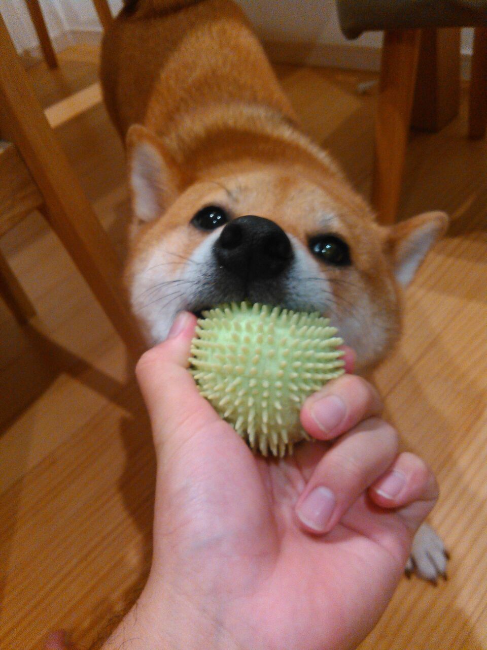 トゲだらけのボールを引っ張り合う
