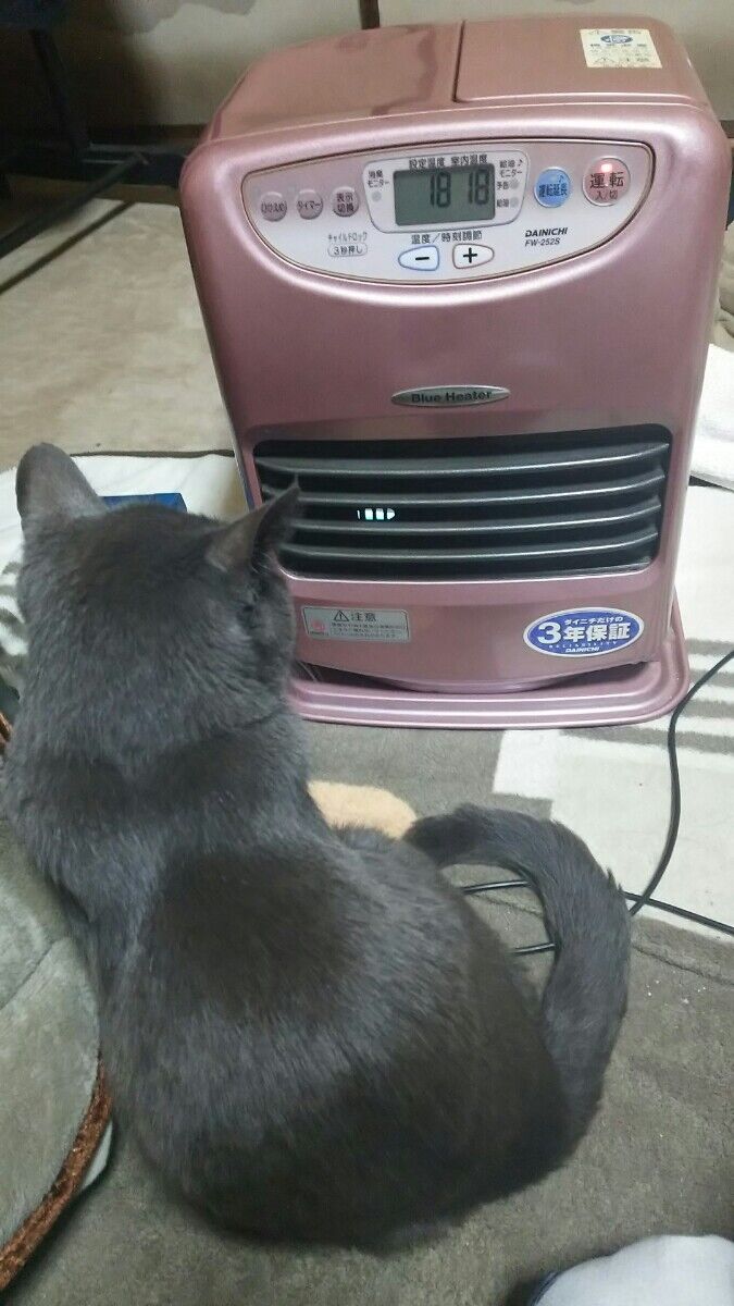 あ!猫がストーブに近づきすぎて焦げてる!