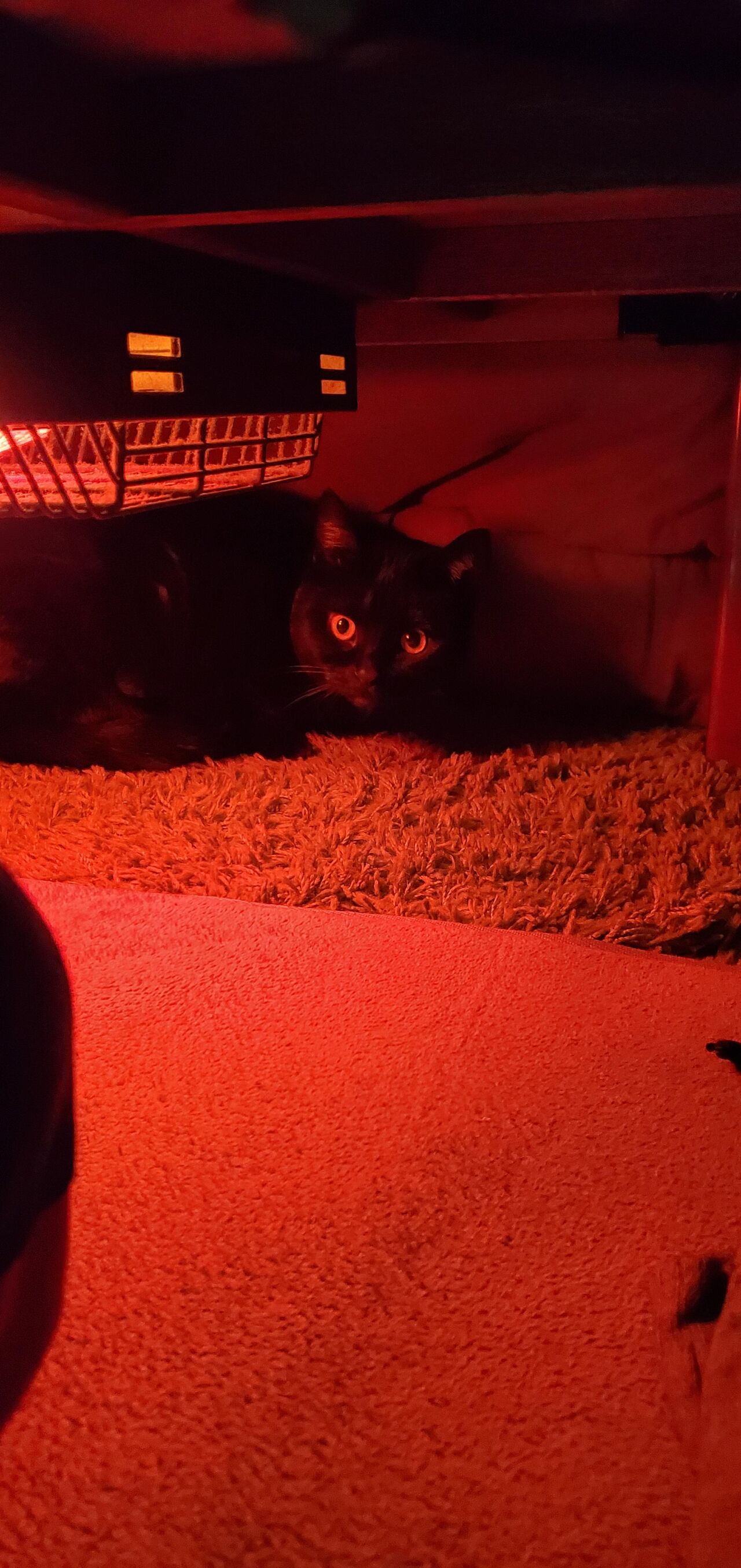 電気ストーブの前にいて毛が
