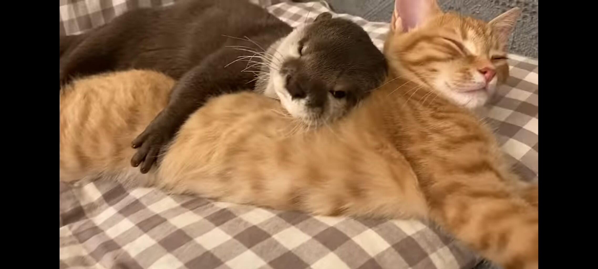 【画像】カワウッソ、猫🐱を抱いてスヤスヤ寝る
