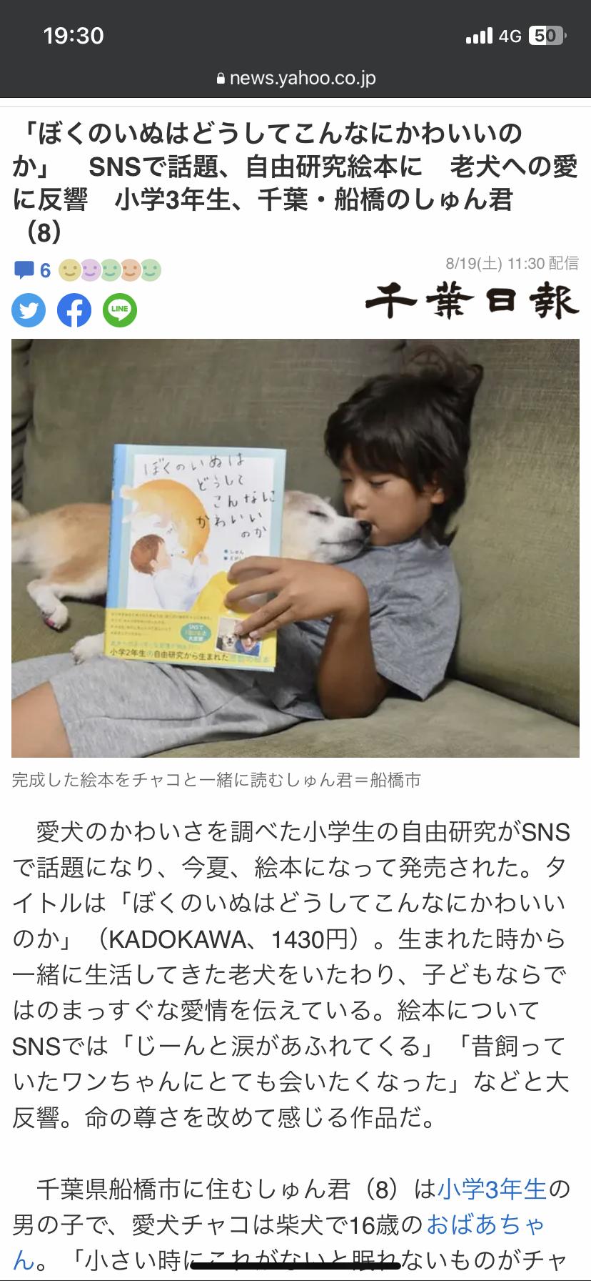 SNSで話題、自由研究絵本に 老犬への愛に反響