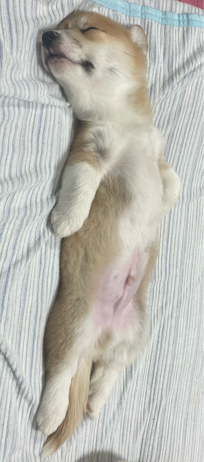 手足短い犬が仰向けで寝てるとこ