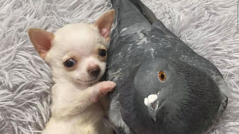 【画像】飛べないハトと歩けない子犬が仲良しに。寄り添う姿が愛らしい