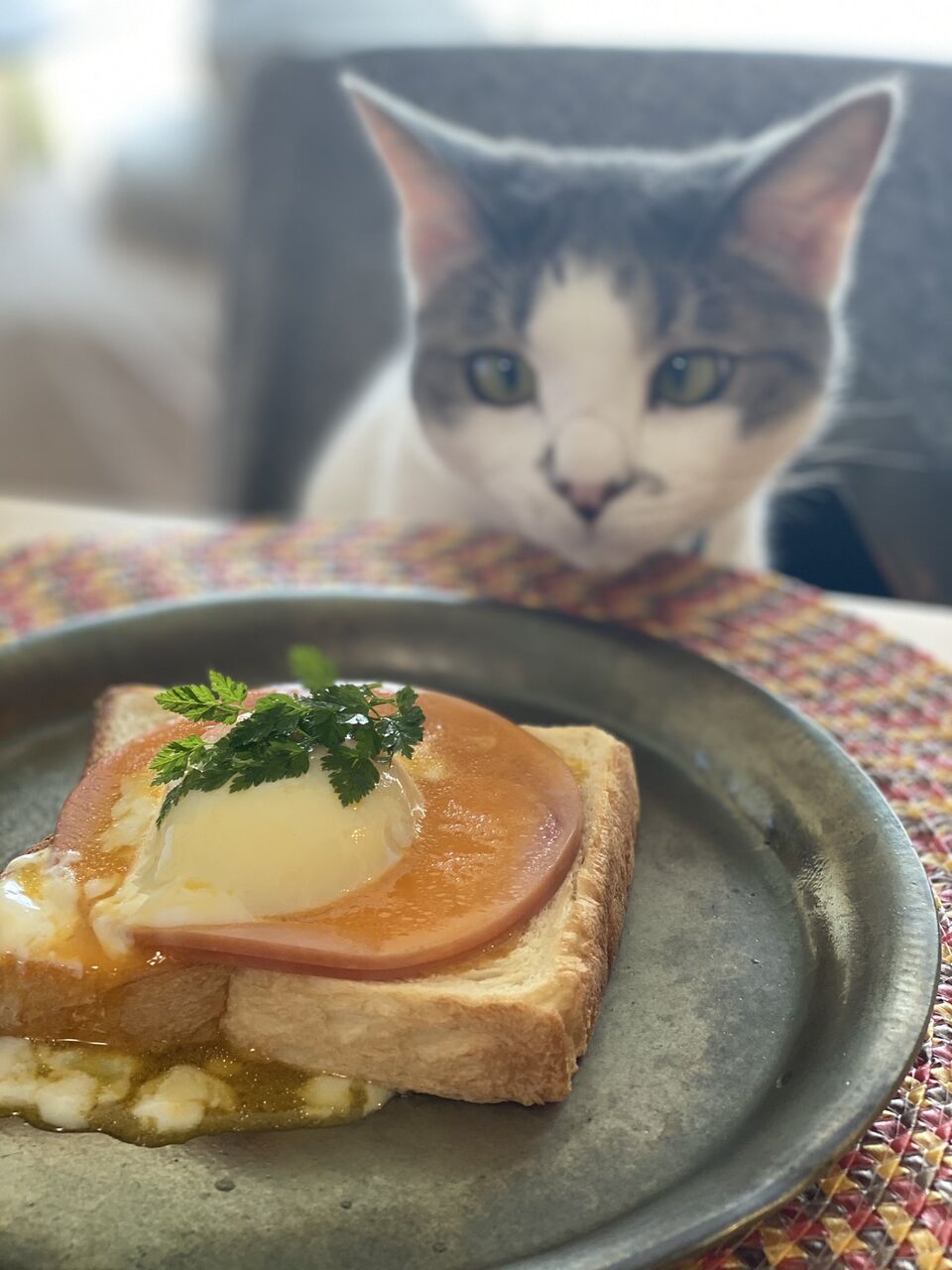 (´・ω・`)猫が僕のご飯狙ってる…