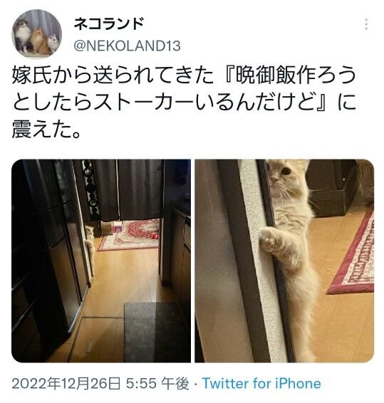 ワイの家の猫、ずっとワイの後をつけてくる